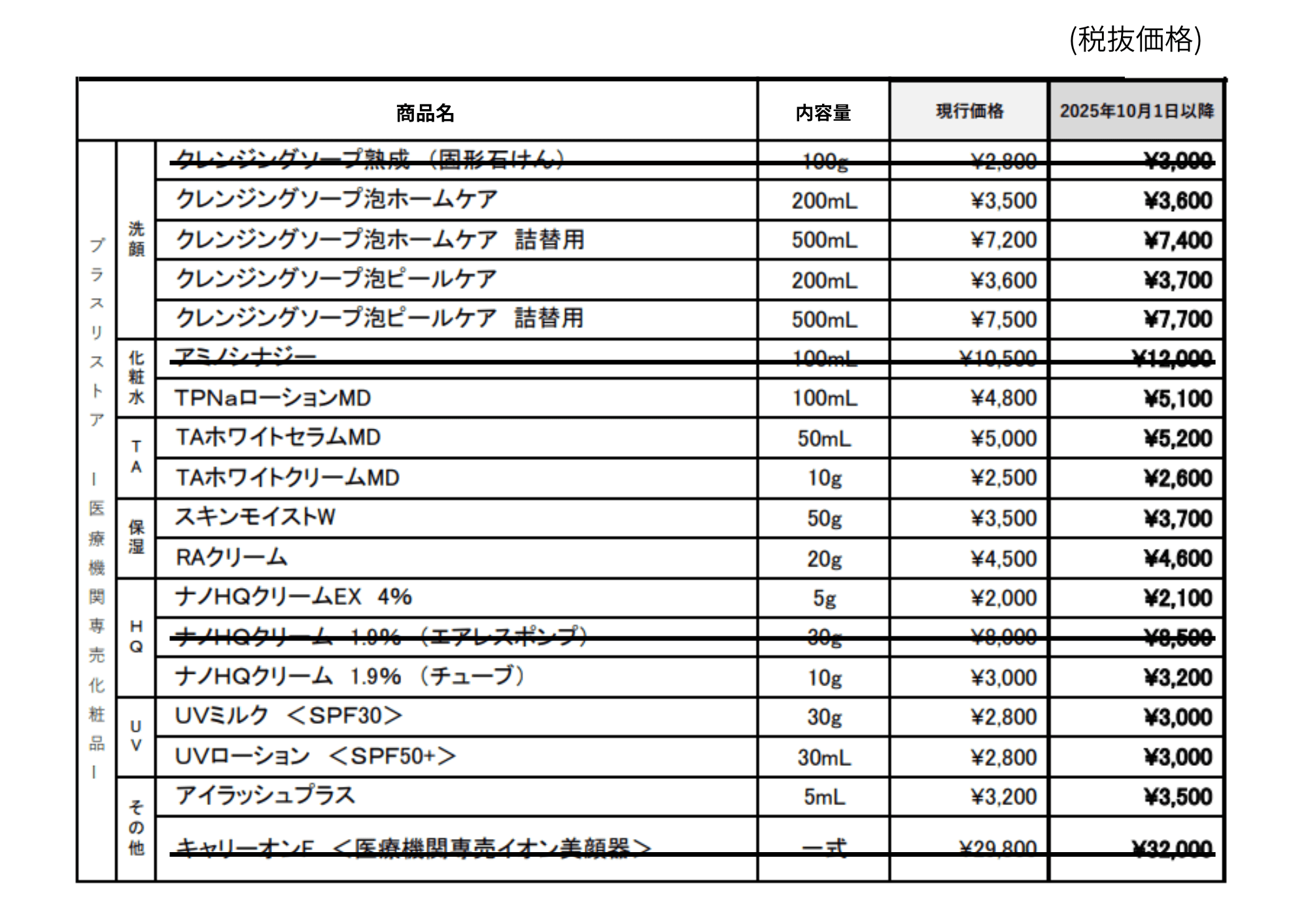 プラスリストア商品価格改定のお知らせ(2025年10月~)